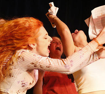 Unsere Studierenden stehen schon während der Ausbildung regelmäßig auf der Bühne und vor der Kamera.